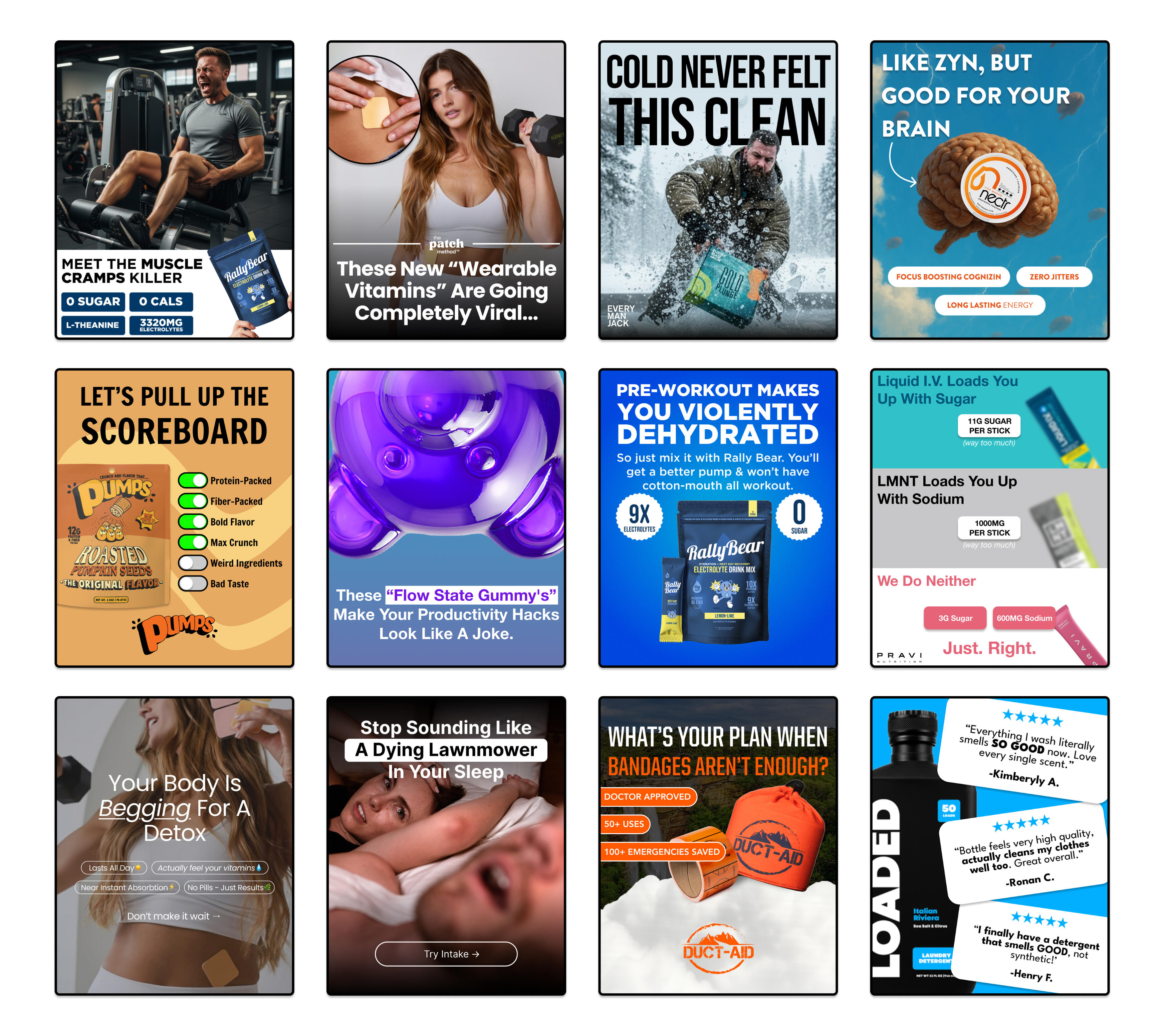 You're constantly launching new & unique ads every week. Whenever an ad fatigues, you have 20+ more to take it's place and finding winning ads becomes predictable. Your "creative bottleneck" is a thing of the past.
